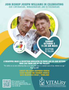 Join us for a beautiful mass, celebrated by Bishop Joseph Williams, and reception to honor those age 80 and above who live Life to the Fullest!  Family and friends of our special guests are most welcome to be part of this joy-filled day filled with fellowship and love.
