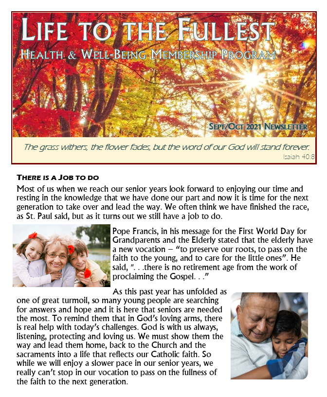 - Seniors continued vocation to pass on the fullness of the faith to the next generation;
