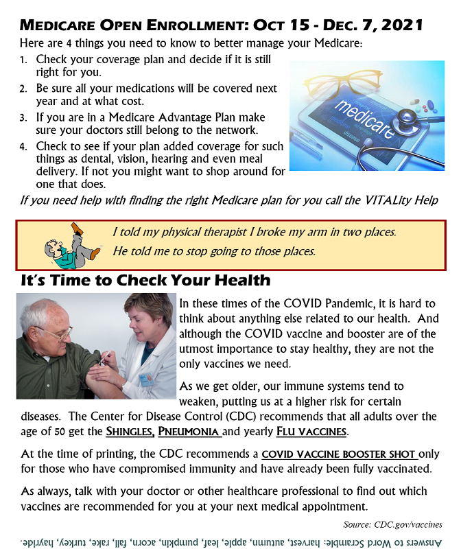 - Medicare open enrollment period;