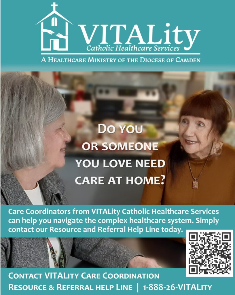 Aging often brings with it the challenges of living safely at home either alone or with family. Nurses and social workers with the Diocese of Camden’s VITALity Catholic Healthcare Services often encounter individuals during some of these most difficult times of their lives. And when seniors and those with disabilities are faced with the need for help in the home, one call to our Resource and Referral Help Line 1-888-26-VITALity  (1-888-268-4825) connects them to a nurse or social worker who will guide them to resources and assistance to stay as independent and safe as possible.