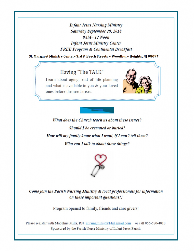 INFANT JESUS PARISH NURSES HOST “THE TALK”