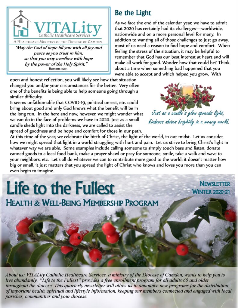 As a member of the VITALity “LIFE TO THE FULLEST” Senior Health and Well Being Membership Program, you will receive health and well-being resources that address your mind, body and spirit for healthy aging. Select any of the resources below that you would like sent to you. In addition, a quarterly LIFE TO THE FULLEST newsletter will be emailed to you with current health and well-being information, tips and upcoming VITALity events for seniors.