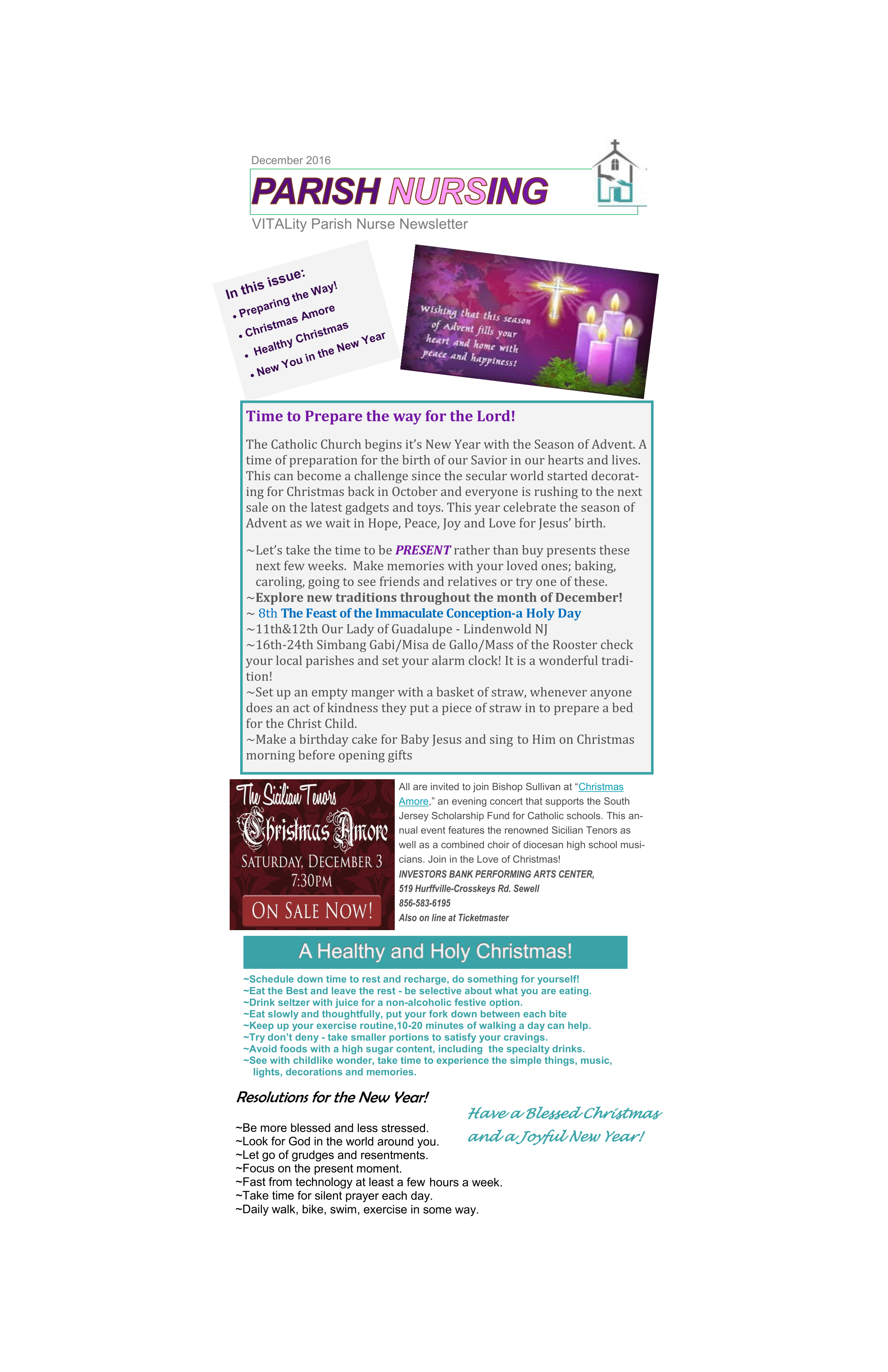 PARISH NURSE NEWSLETTER FOR DECEMBER
