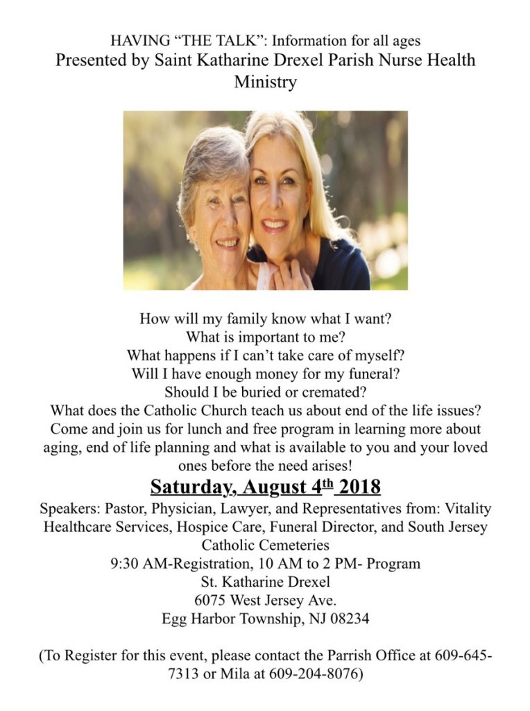 PARISH NURSES OF SAINT KATHARINE DREXEL HOST “THE TALK”