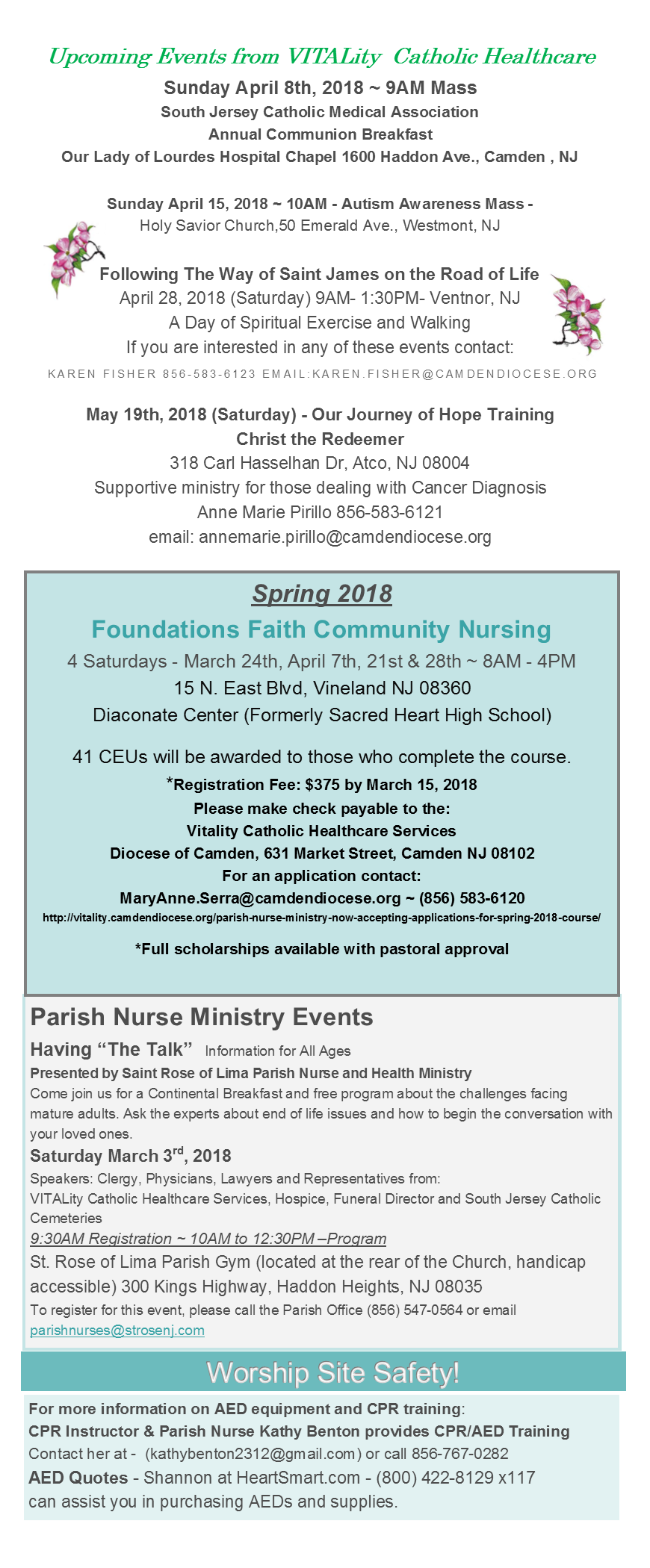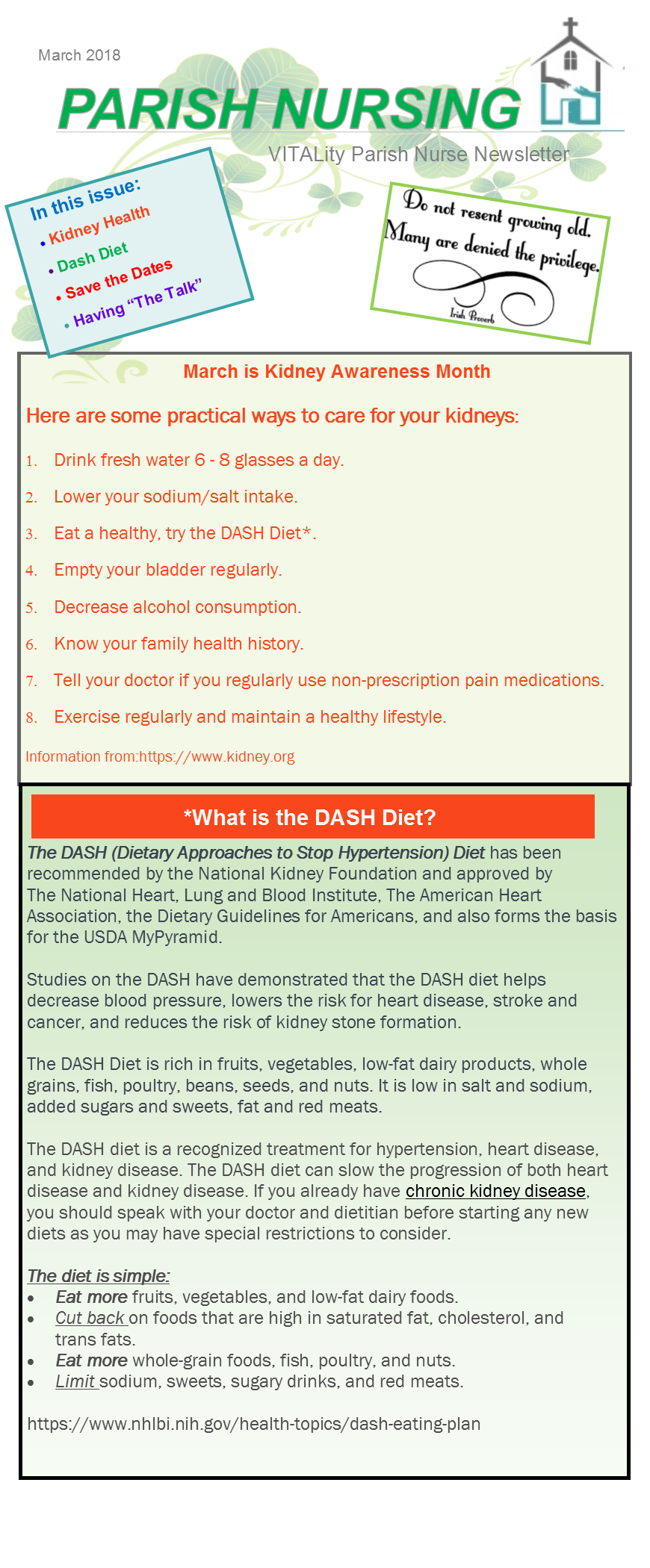 PARISH NURSING NEWSLETTER FOR MARCH 2018