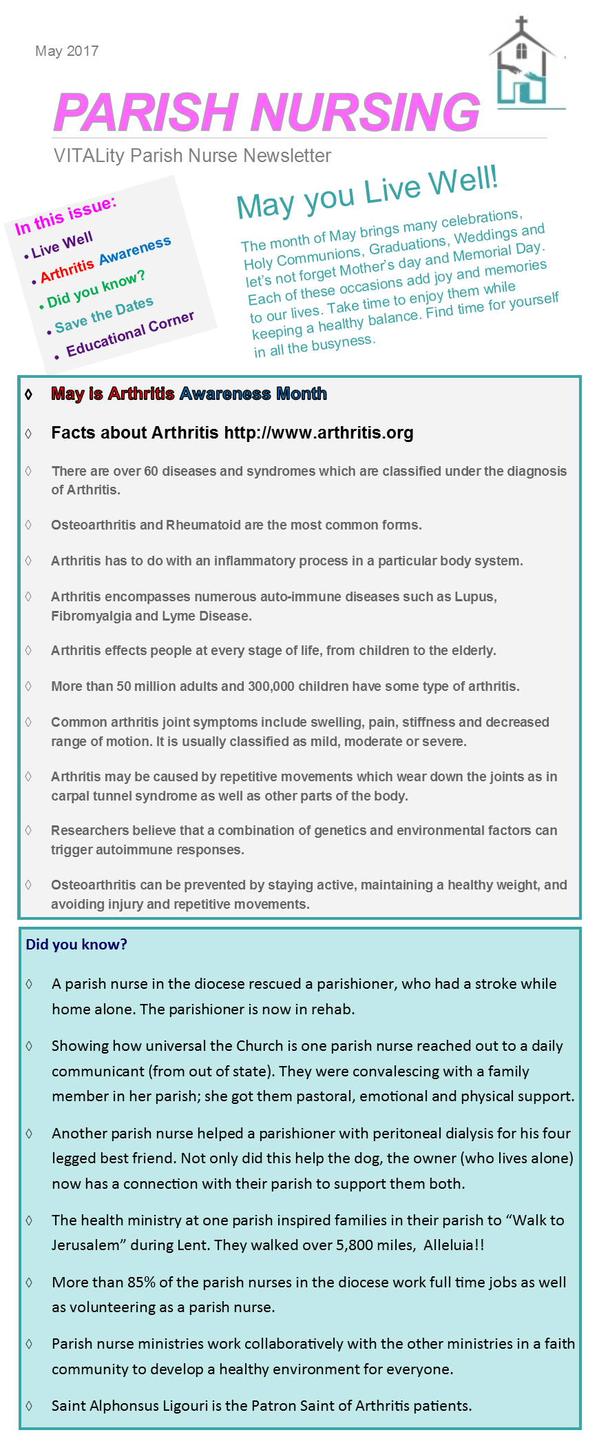 PARISH NURSE NEWSLETTER FOR MAY 2017