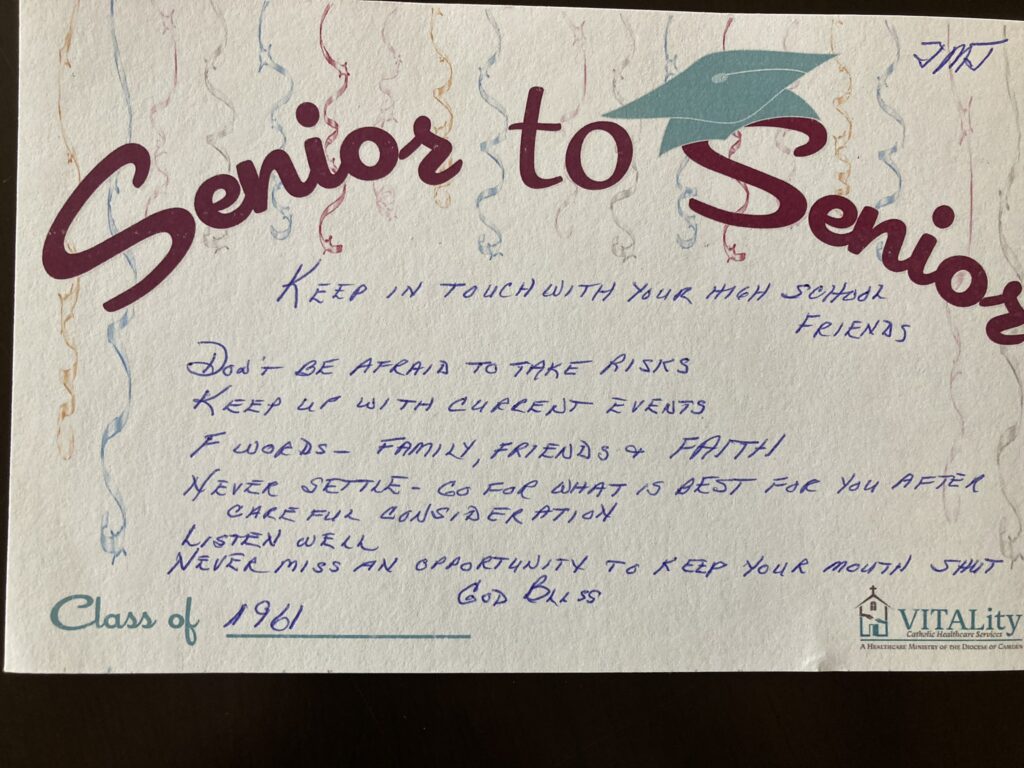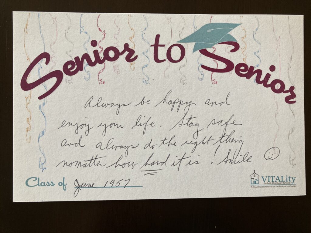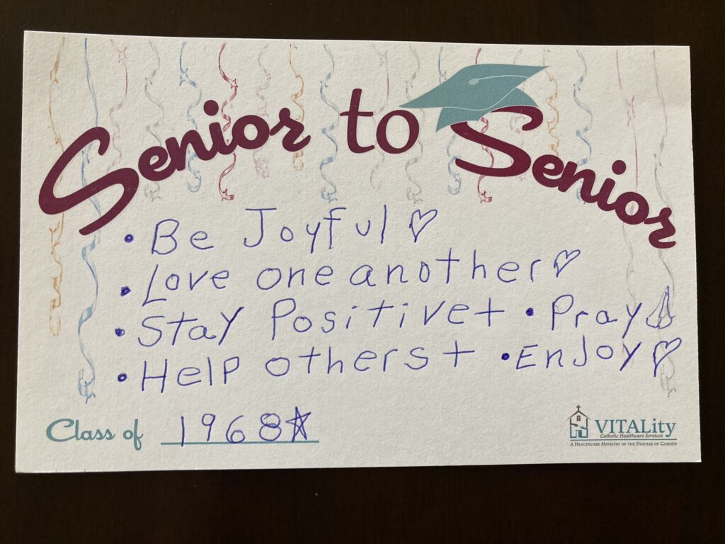 To that end, the prom-goers contributed to VITALity’s “Senior to Senior” project, writing notes and advice on cards that will be distributed to each graduating high school senior in South Jersey’s Catholic schools.