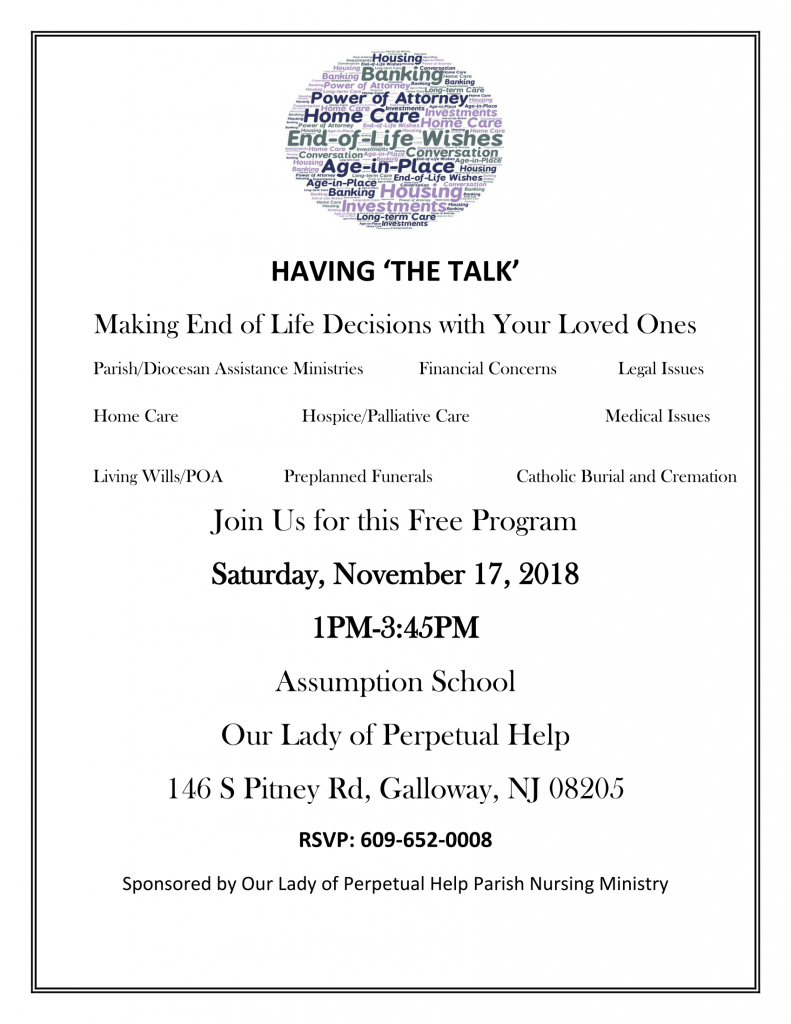The Parish Nurses of Our Lady of Perpetual Help host “Having the Talk”